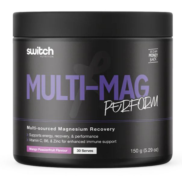 Multi-Mag is a complete, high-performance magnesium supplement designed to support optimal recovery for athletes and active individuals. Featuring six highly bioavailable forms of magnesium, along with Vitamin B6, Vitamin C, and Zinc, this premium formula delivers fast-absorbing, effective support for muscle function, energy production, and sleep quality.