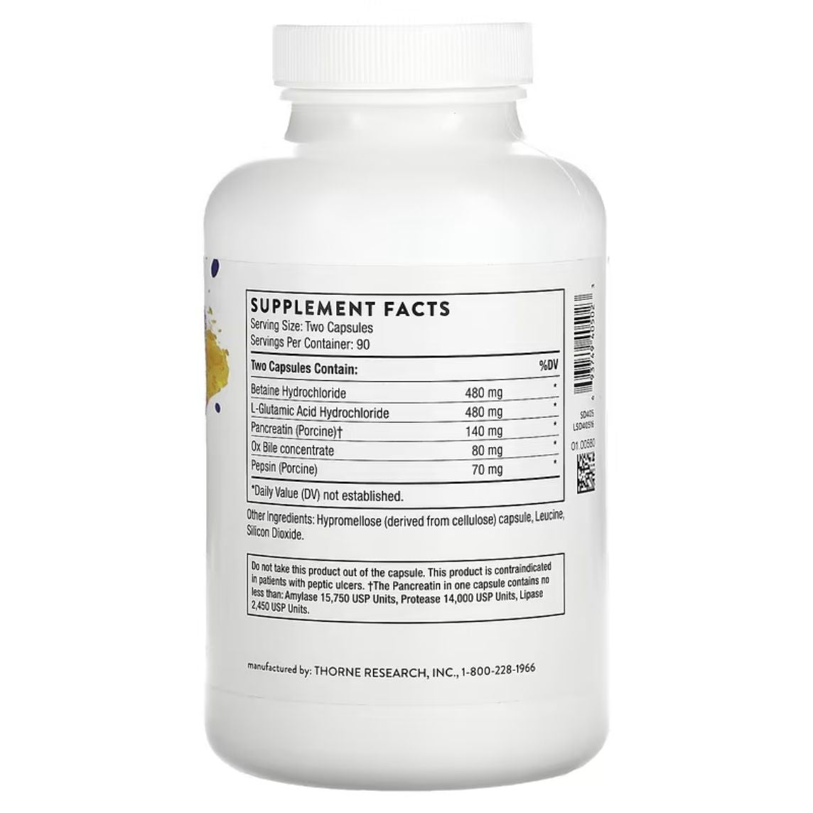 Advanced Digestive Enzymes promotes the digestion and absorption of proteins, fats, and carbs with the combination of HCl, pepsin, pancreatic enzymes, and ox bile.