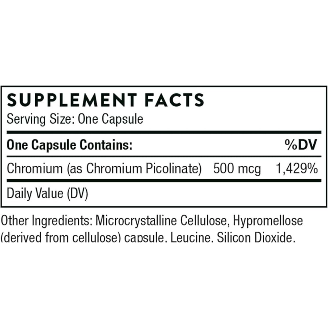 | Chromium (as Chromium Picolinate) | 500 mcg | 1,429% |