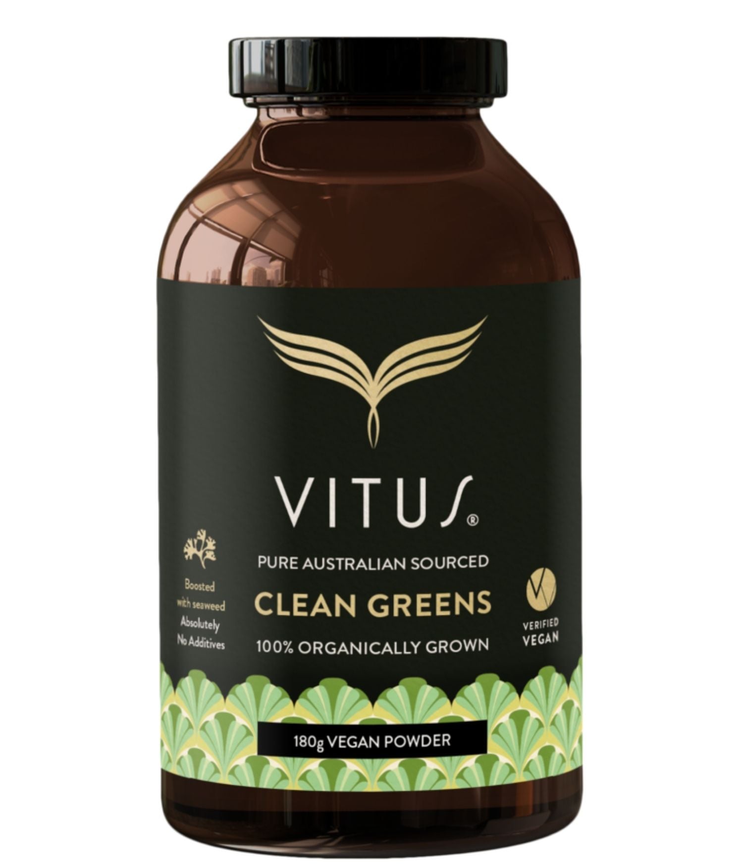 Vitus® clean greens combines 100% organically grown, Australian green vegetables, seaweed and grasses offering daily nutritional support for a busy, active lifestyle. Offering a good source of vitamin E which contributed to cell protection from free radical damage, Vitus Clean Greens also provides a source of both calcium and Vitamin K which contributes to normal bone structure.