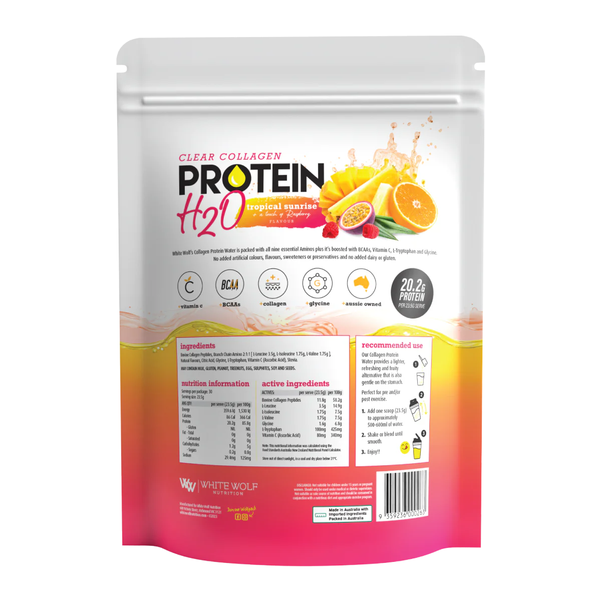 Looking for a clean, refreshing way to support your protein intake? White Wolf’s Collagen Protein H2O offers a light, fruity alternative to traditional protein shakes – with no bloating and no heaviness.