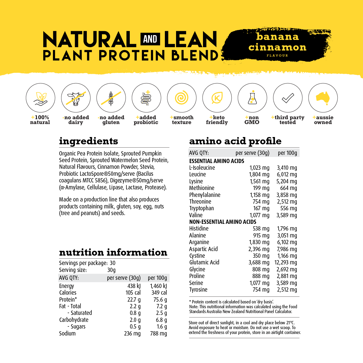 Meet your new favourite plant-based protein: Natural + Lean Plant Protein – a smooth, easy-to-digest blend crafted from three powerful sources: organic pea, watermelon seed, and pumpkin seed protein.