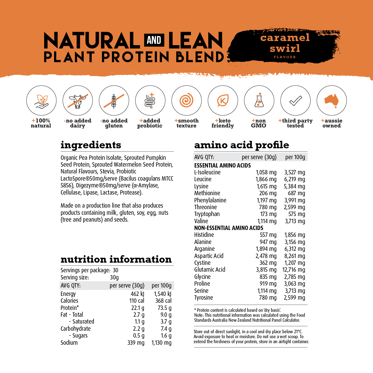 Meet your new favourite plant-based protein: Natural + Lean Plant Protein – a smooth, easy-to-digest blend crafted from three powerful sources: organic pea, watermelon seed, and pumpkin seed protein.
