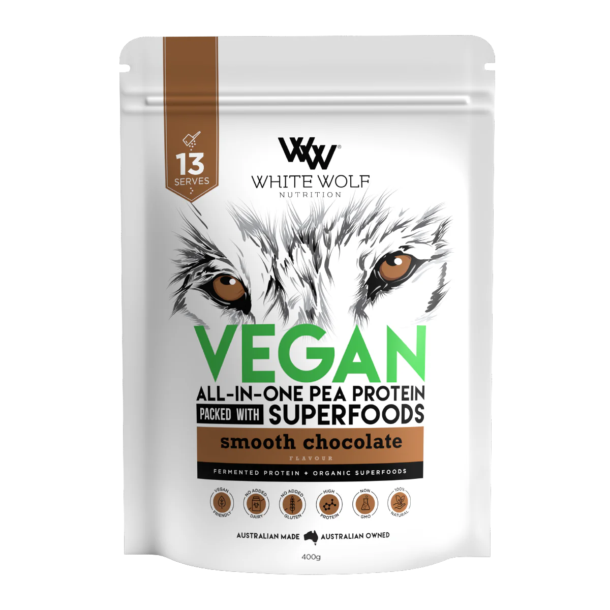 Fuel your body with clean, plant-powered nutrition. White Wolf’s Vegan Organic Superfood Protein is an all-in-one vegan protein blend, now upgraded with fermented organic pea protein and an even bigger dose of antioxidant-rich superfoods, including Australian organic blueberry, raspberry powder, and organic açaí.