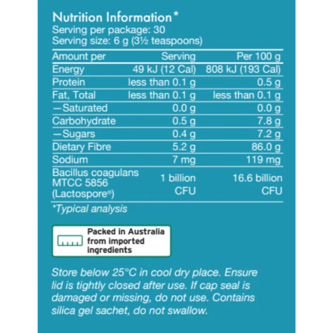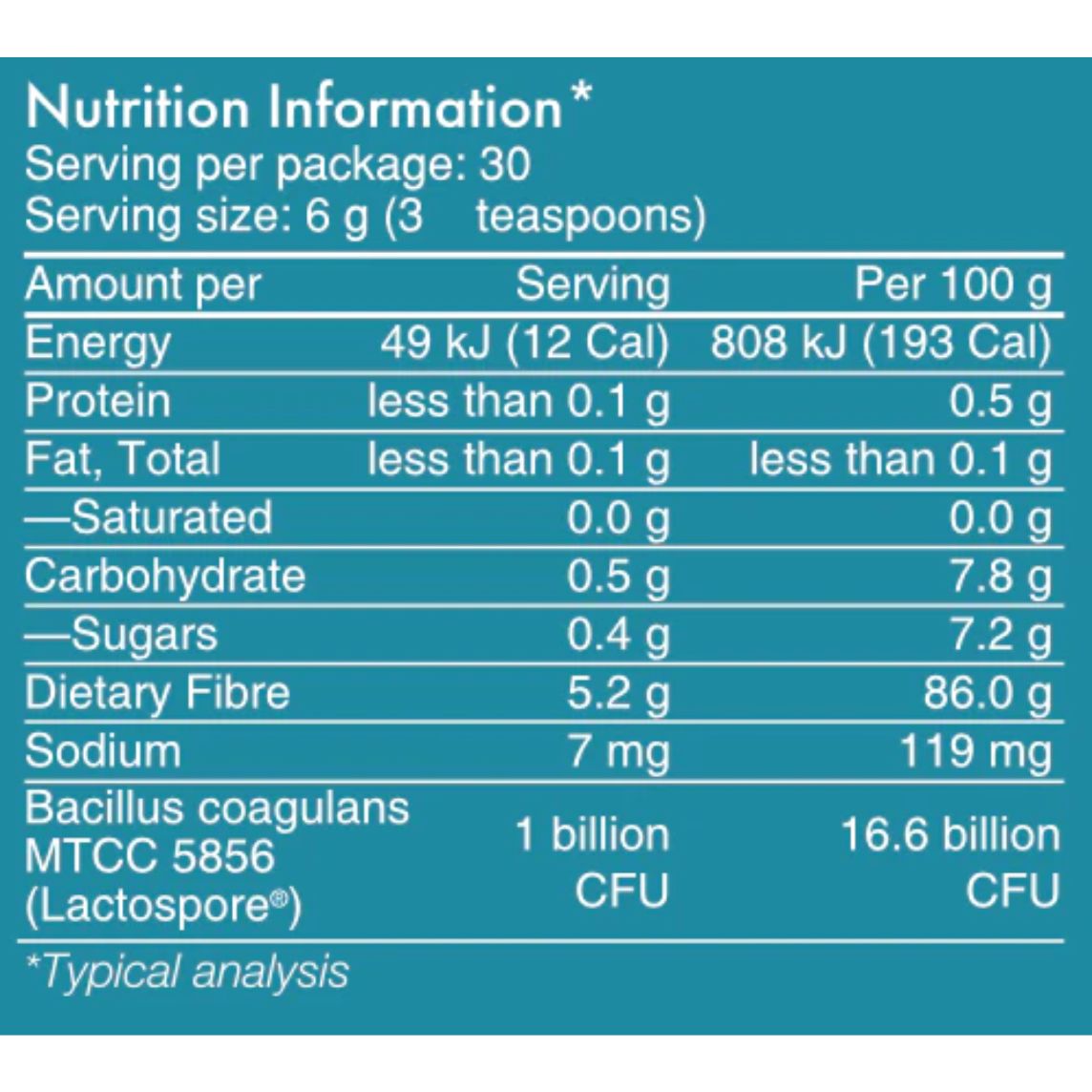 Partially Hydrolysed Guar Gum (Sunfiber®) and Bacillus Coagulans MTCC 5856 (Lactospore®) 1 Billion CFU per serve