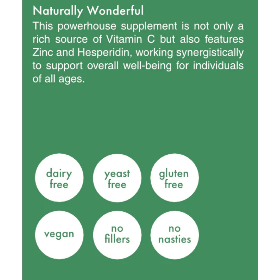 It also includes hesperidin, a natural bioflavonoid that is found in citrus fruit and potentiates the action of Vitamin C within the body.